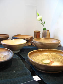 | 窯の中では、温度、位置、炎等の様々な要因により、 緋色や灰かぶりの作品が生まれます。今回は特に 灰に埋れた枯淡の味のある作品を中心に構成します。 |