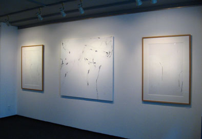今回の個展は、1Fモノクロームのドローイング、版画 |